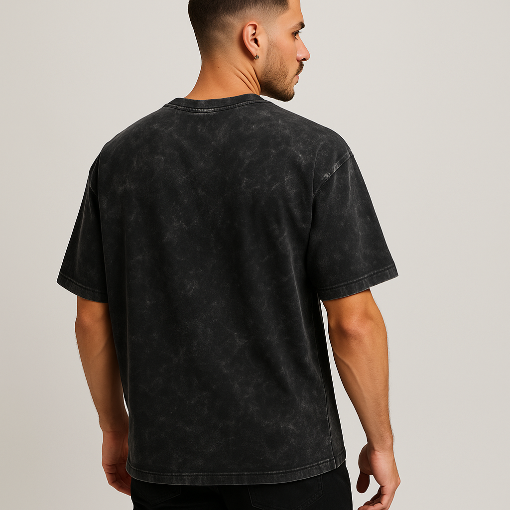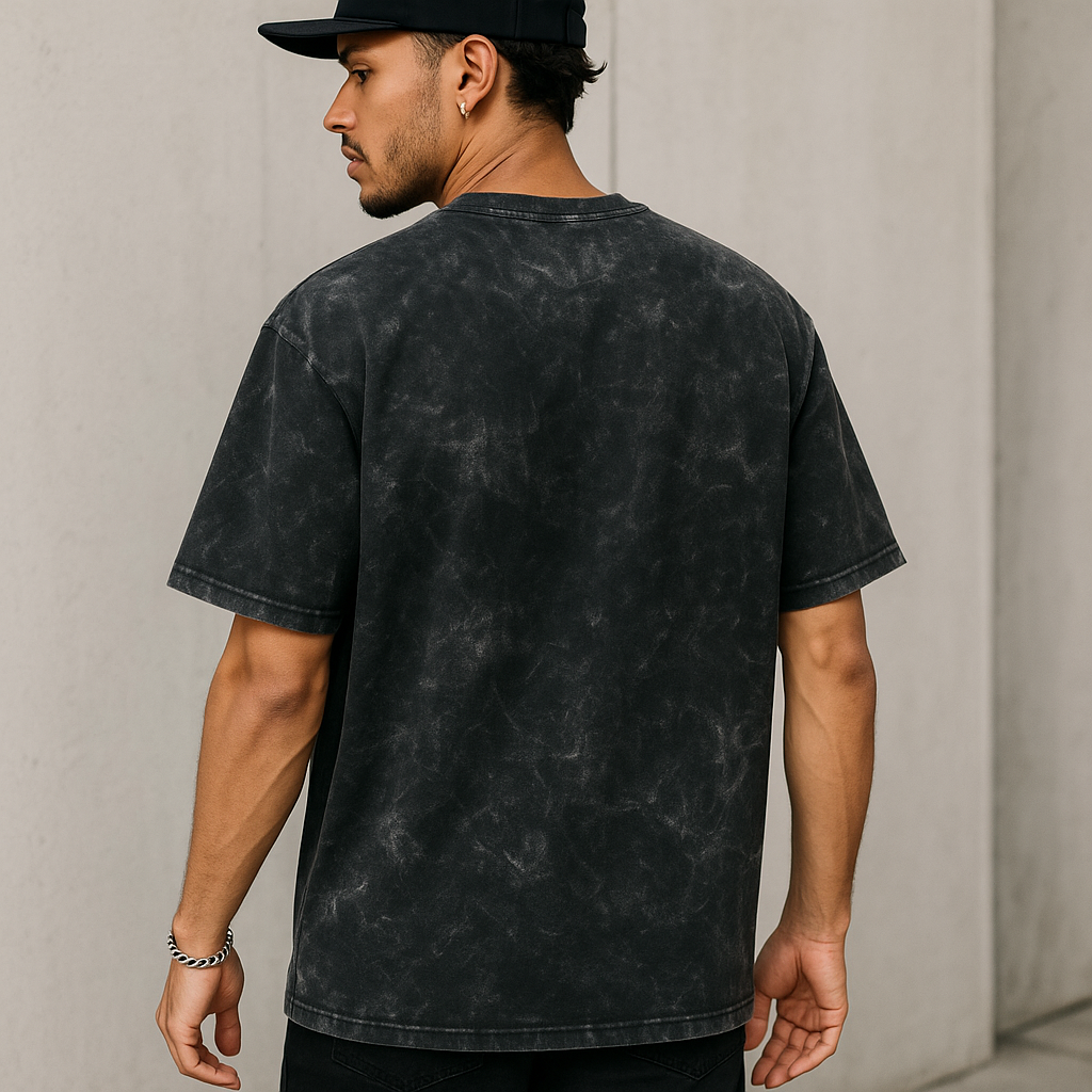 Make a statement with the Men’s Black Oversized Acid Wash T-Shirt, a heavyweight streetwear staple with bold energy and a premium finish.